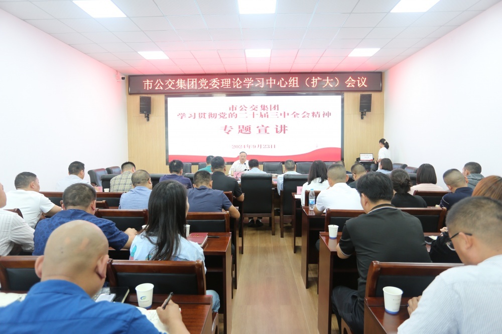 9月23日,在市公交集團學習貫徹黨的二十屆三中全會精神宣講報告會上,集團黨委書記、董事長卞軍虎以深化國資國企改革為切入點作宣講報告。集團各黨支部書記、黨員干部等44人參加會議。