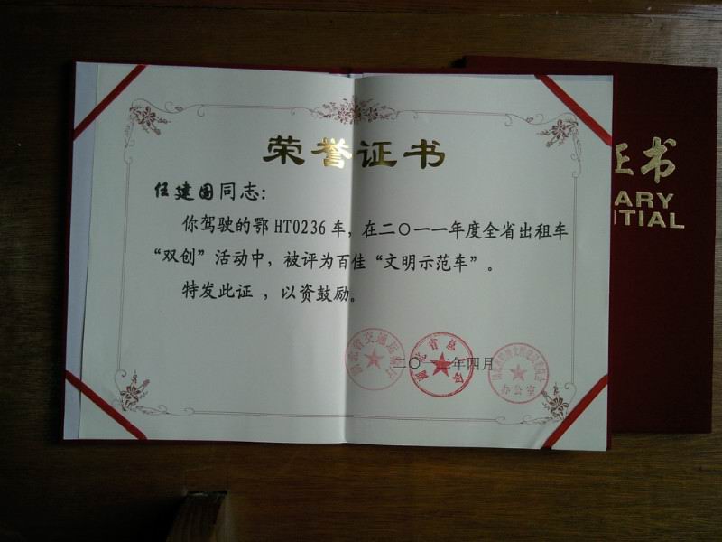 在創(chuàng)建和諧勞動關(guān)系活動中,荊門市公交出租汽車有限公司充分發(fā)揮和調(diào)動廣大駕駛員的勞動熱情和創(chuàng)造活力,獲得了一系列可喜成績。雷鋒車隊隊長曾凡華,2011年獲得省雙創(chuàng)“文明示范車”、荊門市出租行業(yè)“服務(wù)先鋒號”;2012年獲得荊門市“十佳的哥”榮譽稱號;前任隊長王建春獲得省交通廳“優(yōu)秀班組長”榮譽稱號;隊員任建國獲省交通廳“文明示范車”先進個人稱號。2013年6月,公司雷鋒車隊獲“全國工人先鋒號”榮譽。2014年2月28日,公司鄂HT1223雷鋒車駕駛員張華維獲省精神文明建設(shè)委員會辦公室、省交通運輸廳“雷鋒號”榮譽標牌。雷鋒車隊先后涌現(xiàn)出一批優(yōu)秀駕駛員,分別獲得了荊門出租汽車行業(yè)“服務(wù)先鋒號”、“十佳的哥的姐”等稱號及“荊門市道德模范提名獎”、“荊門市見義勇為先進集體”。