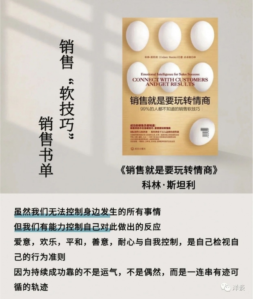 前段時間幾個同事來找我傾訴,說客戶的溝通該做的我都做了,最后怎么客戶不理我了?我們一起分析原因,商量對策。后來我把大家遇到的問題進(jìn)行了歸納總結(jié),準(zhǔn)備分析探討一個主題:為什么客戶不理我。在充實材料的時候,我發(fā)現(xiàn)了一本好書,它從問題的本質(zhì)、理論的依據(jù)以及實操的維度解答了大家的困惑。今天和大家分享這本書的精髓。書名叫作《銷售就是要玩轉(zhuǎn)情商》,它的副標(biāo)題是“99%的人都不知道的銷售軟技巧”,在博雅、思文書屋都有賣。