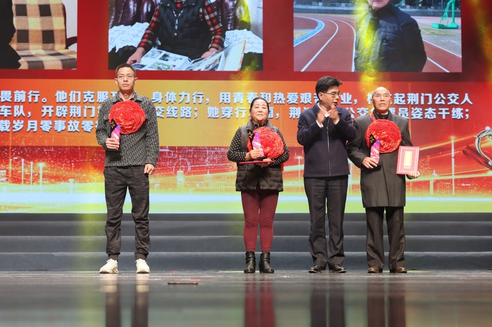 頒獎(jiǎng)環(huán)節(jié),在荊門公交發(fā)展歷程中做出過杰出貢獻(xiàn)的8名“時(shí)代標(biāo)兵”人物,被授予“崢嶸歲月”“風(fēng)華正茂”“無悔青春”時(shí)代標(biāo)兵,感謝他們一路走來的無私付出和拼搏奮斗。